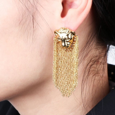 As impressive as a furry mane, this stunning long lion earring!