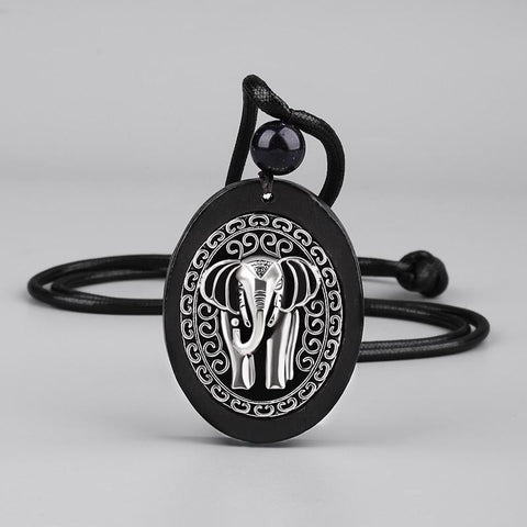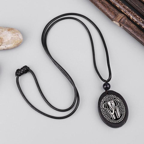 This is the most beautiful lucky elephant necklace in our collection. The arrangement of the motifs gives it a Tibetan look.