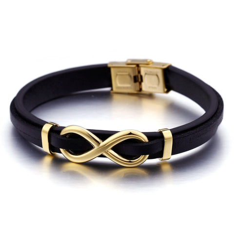 This luxurious bracelet with an infinity symbol showcases a sophisticated style. The bracelet also features a steel clasp that keeps it securely in place, making it perfect for everyday use.