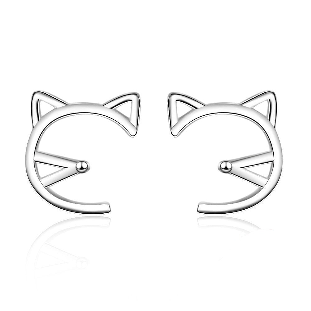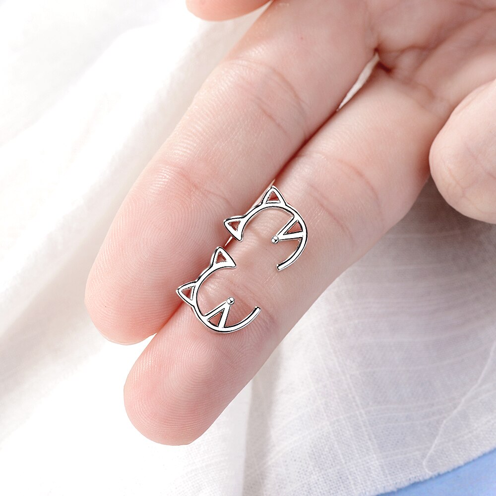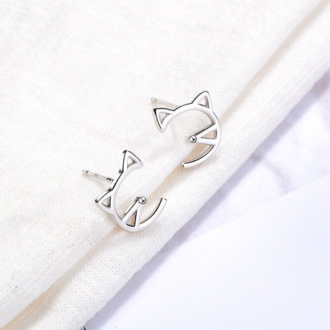 Make a statement with these half-head cat earrings! These stunning silver earrings are inspired by cats and feature two halves of a cat with a unique design, adding a feline touch to your looks. You will look more stunning than ever while conquering the world with these eye-catching earrings.