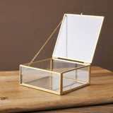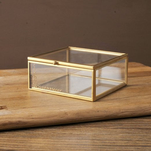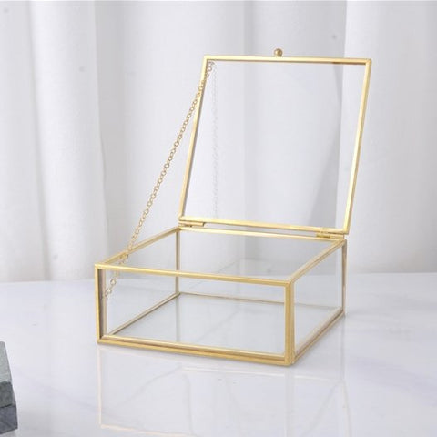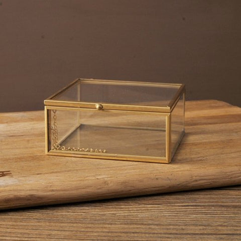 This Luxury Glass Jewellery Box perfectly combines function and style. It's the ideal piece not only for keeping your jewellery organised, but also for enhancing your interior décor with its golden accents. Despite its delicate appearance, this box is sturdy, durable, and minimalist in design. Its transparent finish lets you keep your treasures in clear view at all times. The brass chain that holds the lid adds a trendy and glamorous touch, ensuring a unique and eye-catching effect!