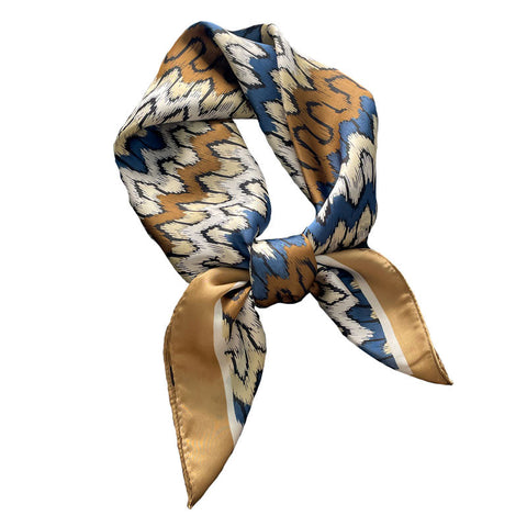 Discover the timeless elegance of a luxurious hair scarf. This masterpiece, inspired by distant cultures, reflects a harmonious blend of ethnic patterns and colours. The deep shades of brown and blue catch the eye and create a visual symphony that evokes far-off horizons.