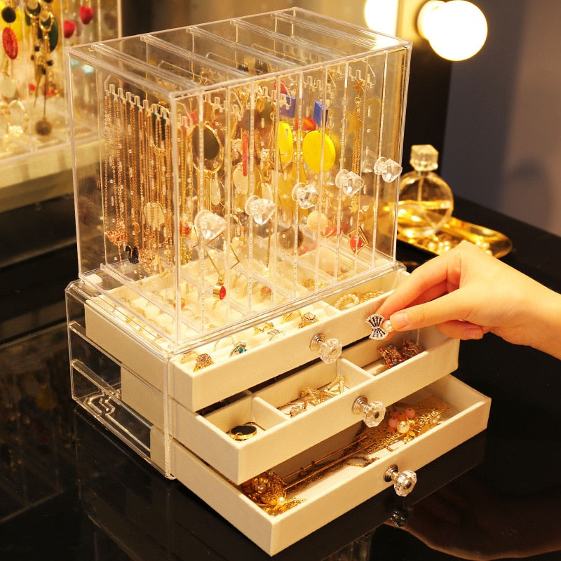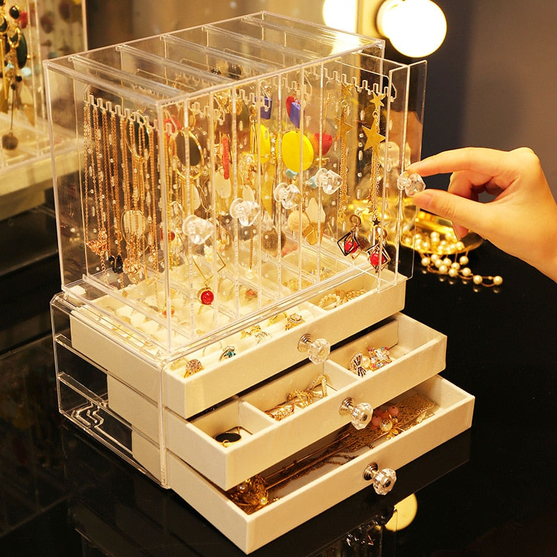Discover the Luxury Jewellery Box made of Acrylic and Glass – a unique design featuring a glass hook compartment for your necklaces or earrings.