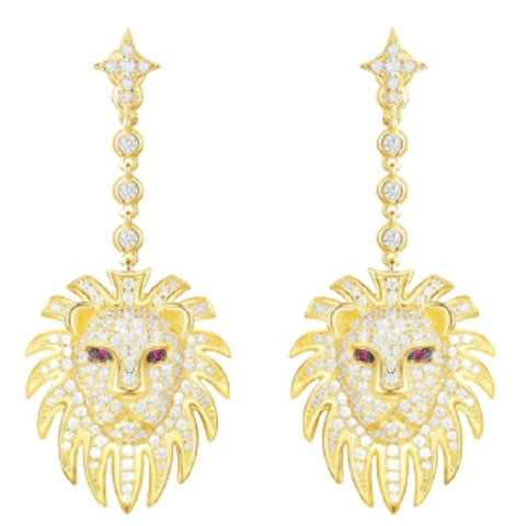 A stunning pair of luxurious lion earrings! An exceptional display of the earring and its lion-shaped pendant that completely sparkles. This model is unique in its way of wearing, as the pendant hangs behind the ear. Easy to put on, it's perfect for both a night out with friends and big events! An excellent gift idea!