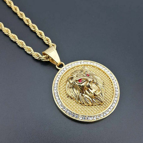 Lion fans look to the future and know where they're going! This stunning lion pendant, with a crown and diamond eyes, makes a bold statement. Red, white, or green - treat yourself!