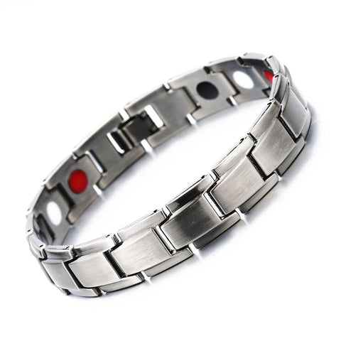 With this sturdy magnetic bracelet made of steel, you can balance your energy. Designed for people who suffer from fatigue or work directly with radio waves, this piece of jewellery helps to reduce the long-term harmful effects caused by computers and mobile phones. Don't hesitate to wear it at work. Thanks to this steel bracelet, you can combine good looks with well-being.