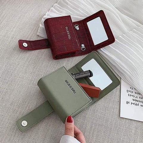 Furthermore, this women's makeup bag features an easy-to-use flap closure. Even more interesting, the inside of the bag includes a small mirror, perfect for quick makeup touch-ups.