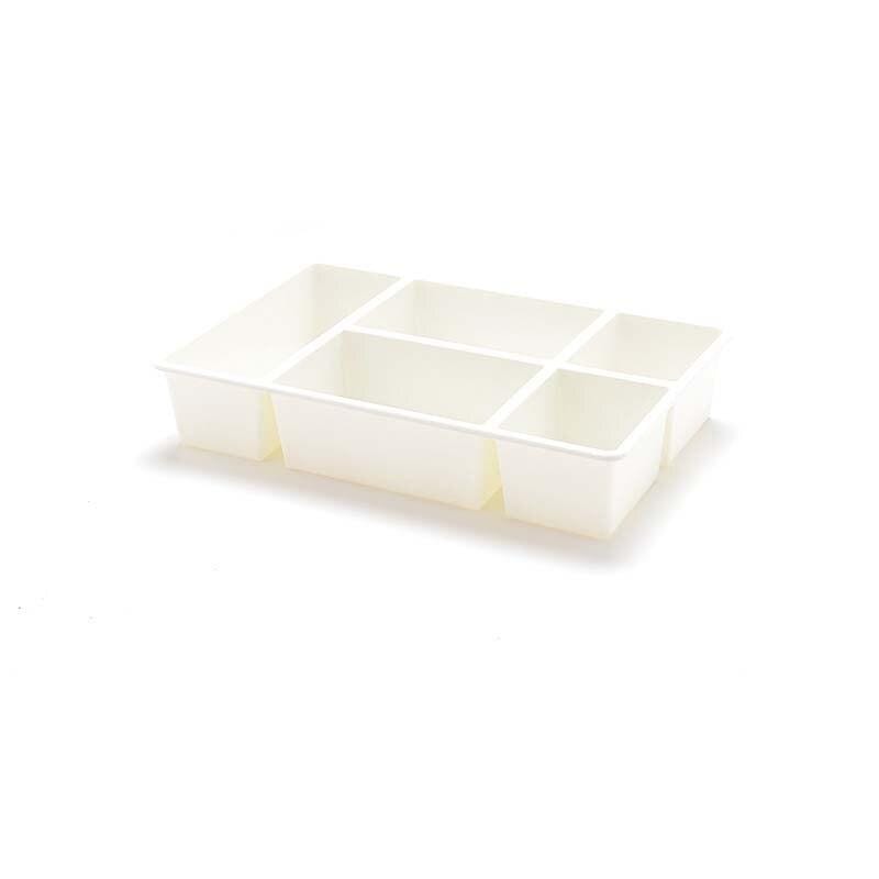 This makeup storage box features 5 compartments where you can organise and store various beauty products. Available in 4 different colours, so you can choose the one that best matches the environment of your makeup space! In addition, this makeup organiser doesn't need to be placed inside a drawer: it can also be used as a display case to store any type of product. It is made from water-resistant plastic, making it ideal for the bathroom as well.
