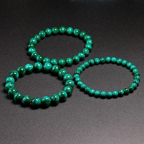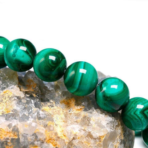 Complete any look with our stylish 10mm malachite bead bracelet. This green malachite stone bracelet is an ancient talisman that brings prosperity, wealth, and abundance to its wearer. It is said that the colour of the green stone represents the energy of nature, healing, growth, and wise choices.