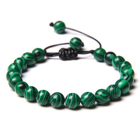 The natural malachite stone bracelet for men is handmade with polished natural malachite stone and cord. Malachite itself is a copper carbonate hydroxide mineral. Its smooth texture and charming green colour add a natural beauty to any look.