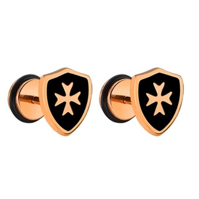 High-quality dark brown Maltese cross earring in stainless steel, available in three different colours.