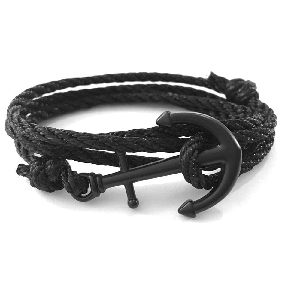 Matte Black Anchor Men's Rope Bracelet