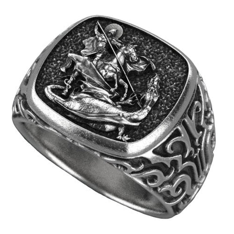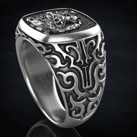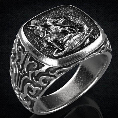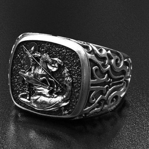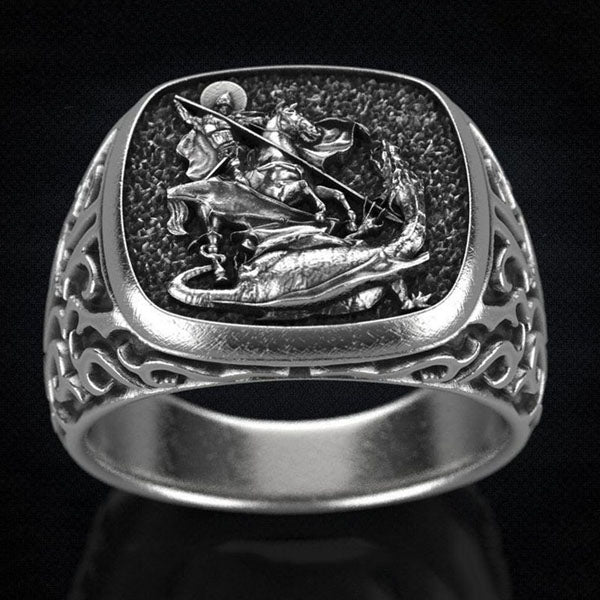 Dive into the medieval era with this ring inspired by one of the most famous battles in history: St. George against the dragon.