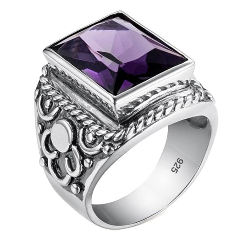 This amethyst ring is available in a large size. Perfect for any man wanting to add elegance and sophistication to his look. This ring is made with genuine amethyst stone, set on a silver band. The amethyst has a stunning violet colour that is sure to impress.
