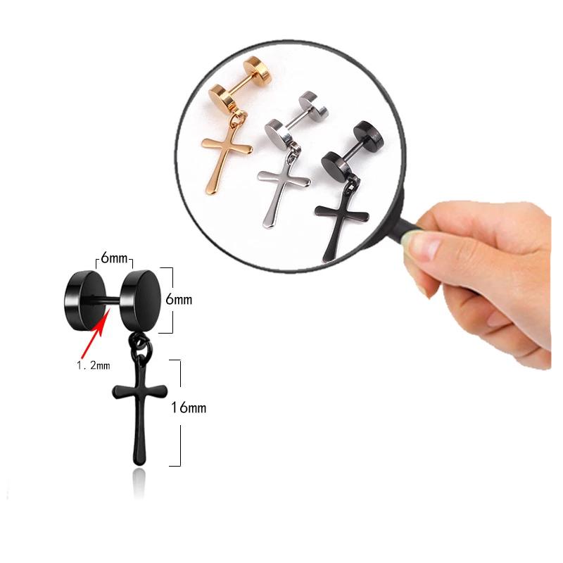 This men's cross earring, made from titanium, celebrates a unique and ancient symbol: the Christian cross. This stunning piece is perfect for those who wish to express their faith with beauty and sophistication.