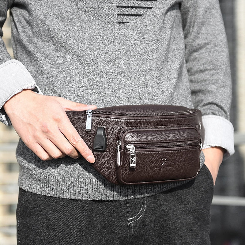 You're going to fall in love with this modern leather waist bag, designed for men.