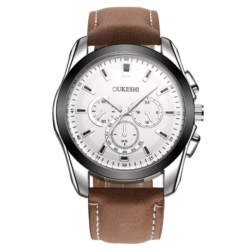 This vintage men's watch with a leather strap is the ideal accessory for every sophisticated gentleman. With its refined design and classic charm, this watch is sure to draw attention wherever you go. The vintage leather strap is comfortable and stylish, and the large face makes it easy to read the time. This watch is an excellent choice, whether for a special occasion or just to add a touch of style to your everyday look.