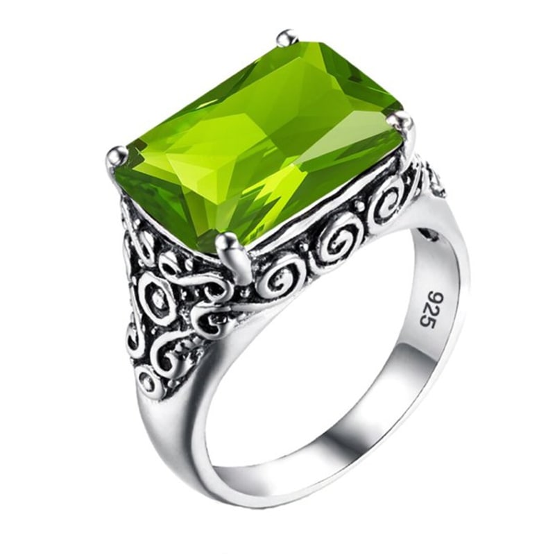 We introduce a men's ring with a peridot stone. This ring is the perfect way to add a touch of elegance to your look. The peridot stone has a beautiful green hue, ideal for adding a pop of colour to your outfit.