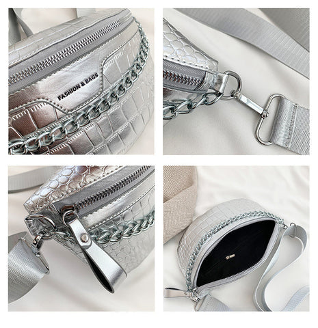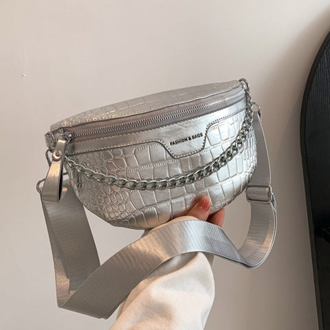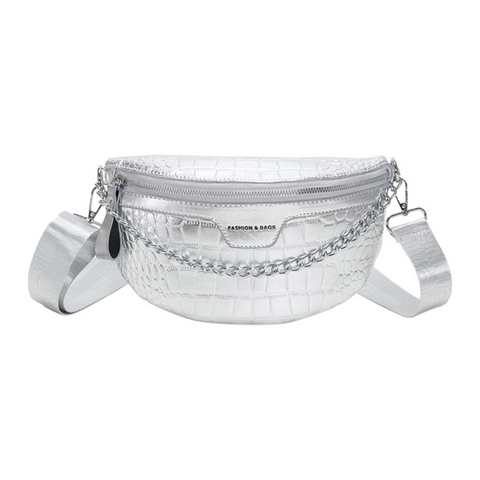 This silver bum bag is much more than just a simple accessory; it's an expression of your bold and modern personality. Its metallic silver colour adds a touch of glamour to your outfits, and the practical strap allows you to wear it comfortably cross-body or around your waist.