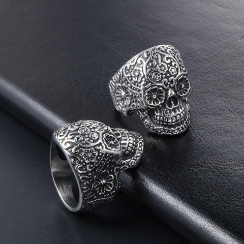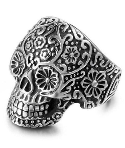 Add a fun touch to your look with this Mexican steel ring and its floral skull in the style of the Day of the Dead.