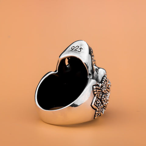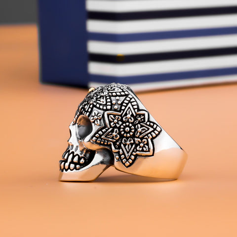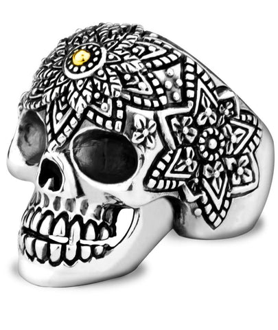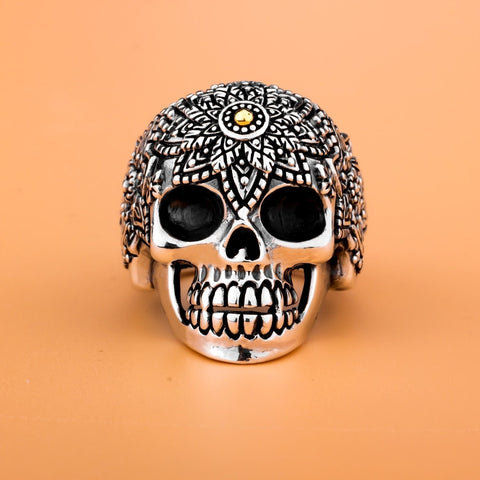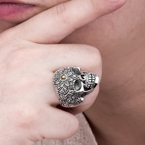 High-quality silver Mexican skull ring. A lovely skull with a yellow jasper on top. Wear it as a talisman!