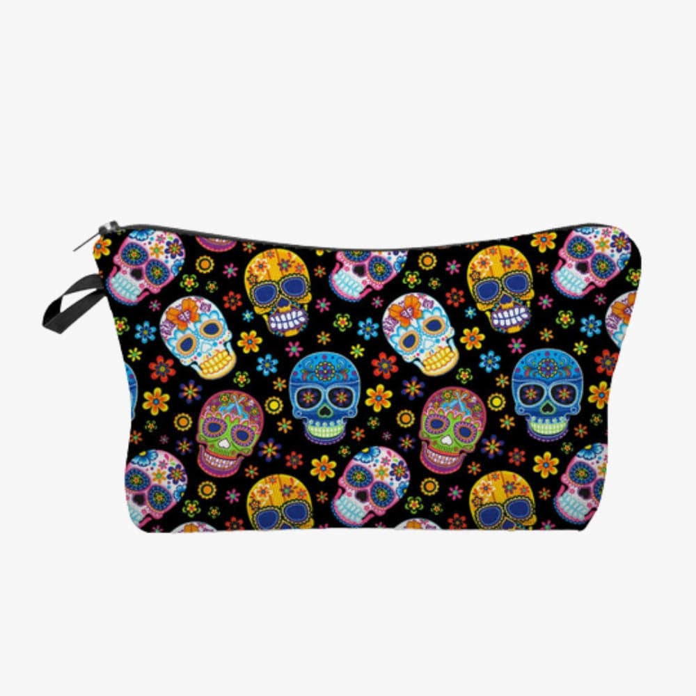 Choose the toiletry bag featuring a Mexican skull design and be seduced by its enigmatic charm. Order now and enjoy your beauty moments with a fascinating accessory.