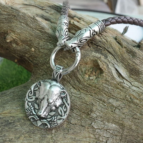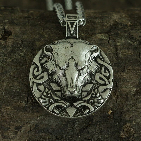 Draw inspiration from the ferocity and independence of the bear with this pendant, featuring a brown bear from the Scandinavian forests adorned with Viking motifs.