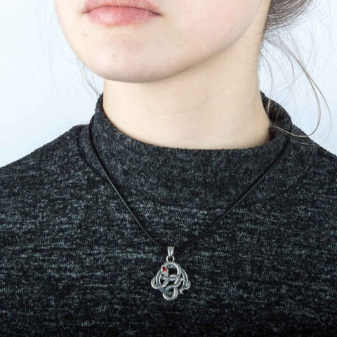 This magnificent necklace features the mythical serpent Jörmungandr. According to Scandinavian legend, the Midgard Serpent was the offspring of the god Loki and the giantess Angrboda.