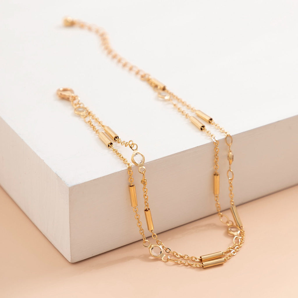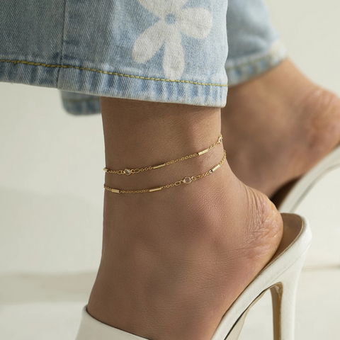 This minimalist anklet is the perfect accessory for the stylish woman. Add a touch of sophistication to your look and create a unique style with these double chains. The design is both chic and timeless.