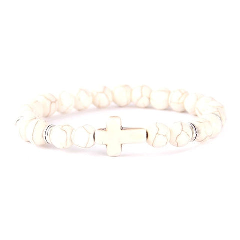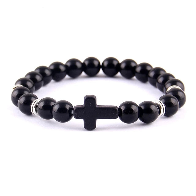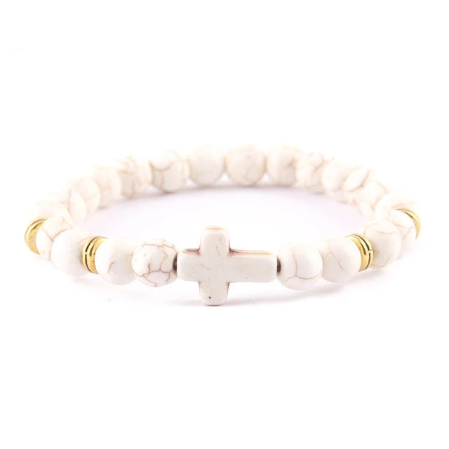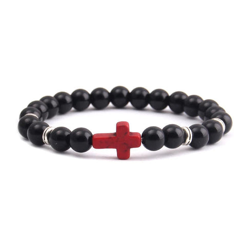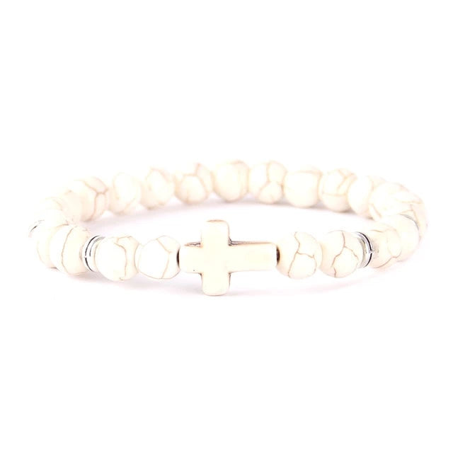 Unique and special, this stunning religious bracelet is an incredible gift for yourself or someone you love! Elastic religious bracelet (fits perfectly on all wrists). Delicately carved and crafted Christian cross by our team. Various natural beads decorate this modern, elegant, and absolutely stylish religious bracelet. A wonderful addition to any wardrobe, this stunning religious bracelet from the Holy Land is a treasure to be cherished!