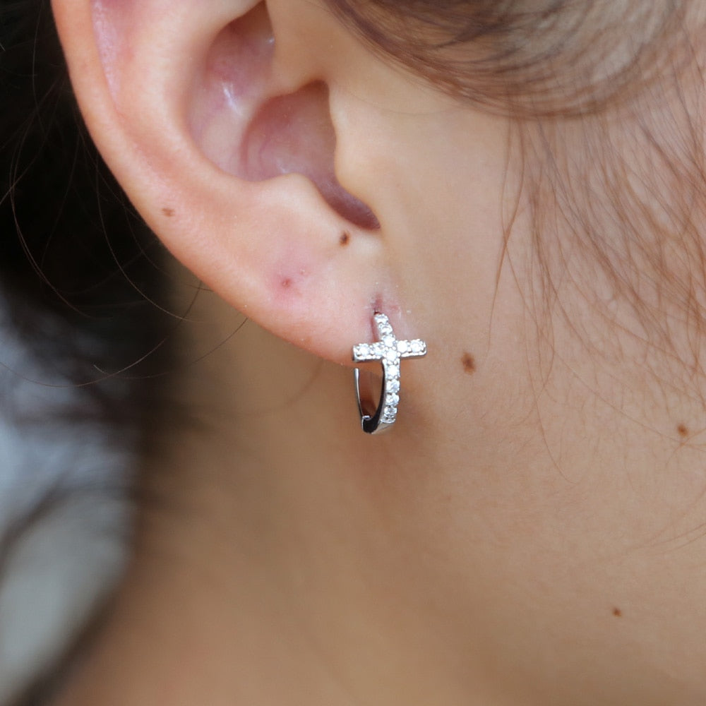 Carry all the love and protection of Christ with these dangling cross earrings.