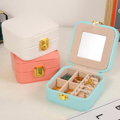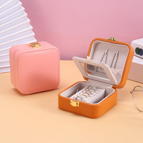 This mirror glass jewellery box is a jewellery case of exceptional elegance. With its compact dimensions of 10 x 10 x 5 cm, this box is made from high-quality faux leather, offering a luxurious feel and outstanding durability. It features a practical stand mirror, allowing you to admire your jewellery with ease. Its stylish gold clasp adds a touch of sophistication while keeping your precious treasures secure. The dedicated compartments and hooks allow you to organise your jewellery neatly and provide easy access. Treat yourself to this mirror glass jewellery box for the perfect blend of beauty and functionality, and store your jewellery in style.