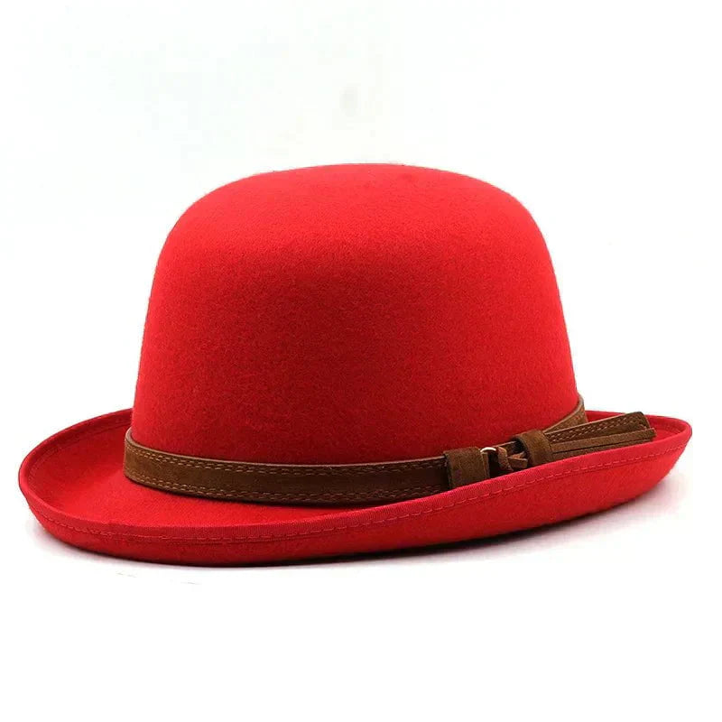 Our bowler hat is available in eight colours, each adding a unique touch to the look. From classic black to bolder shades like red, navy blue or emerald green, there's a bowler hat for every personality and occasion. Thanks to the careful selection of colours, it's easy to find the perfect bowler hat for any situation, whether for a party, a classy evening out, or a day in the office.