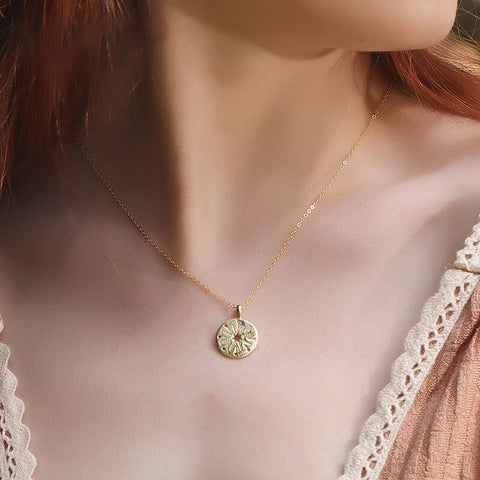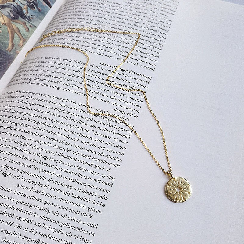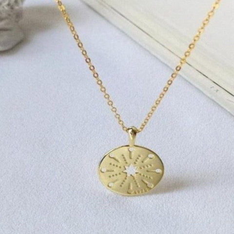 Dazzling symbols also represent modernity. They also add a touch of originality, like this modern compass pendant.