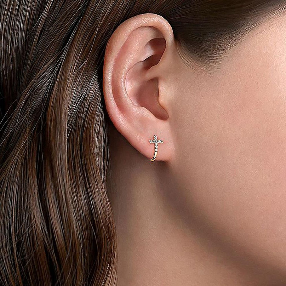 Carry with you all the love and protection of Christ with these gold cross earrings.