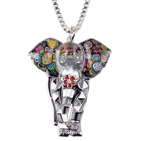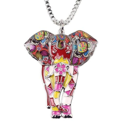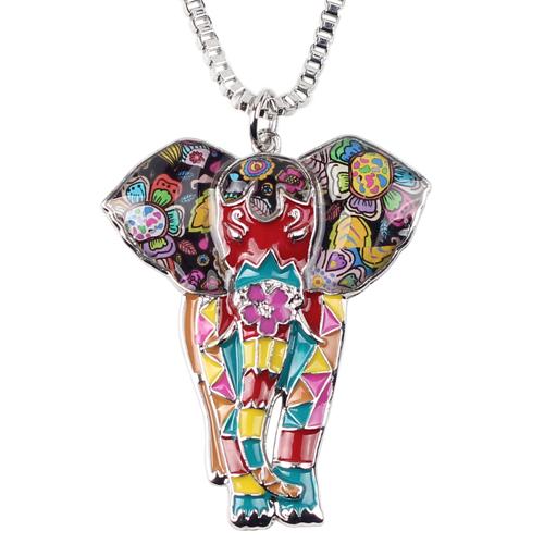 Enhance your neckline in the most beautiful way possible with this stunning modern colourful elephant necklace. A high-quality piece of jewellery with delicate floral patterns.