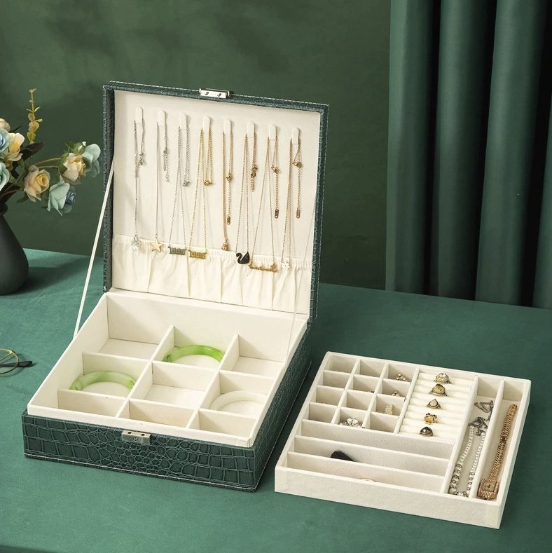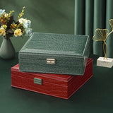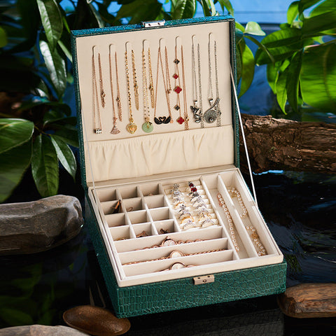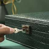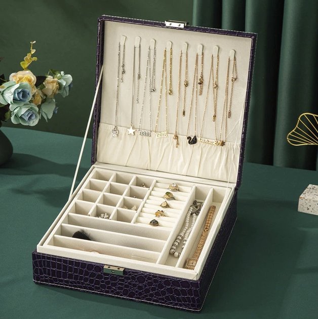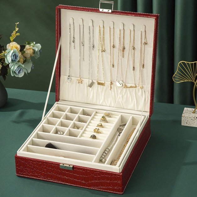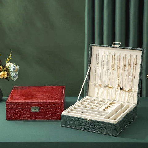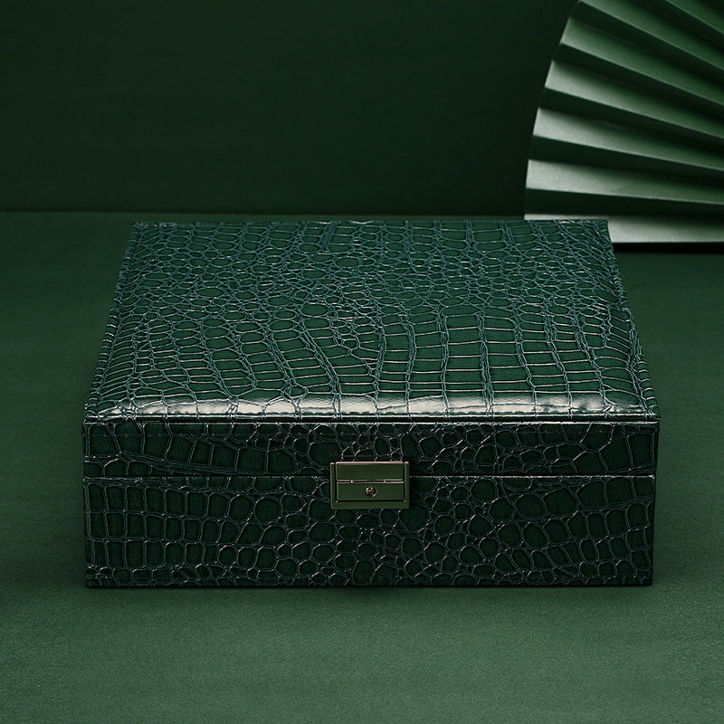 Modern Jewellery Box combines protection and security with its latch lock and leather design. Its elegant look is enhanced by the lychee-pattern texture.