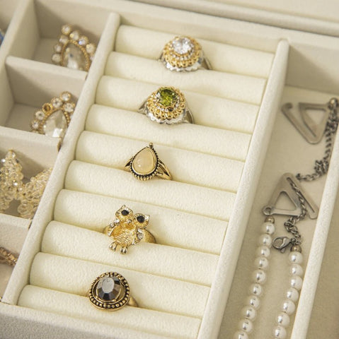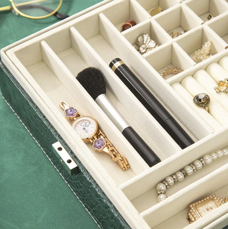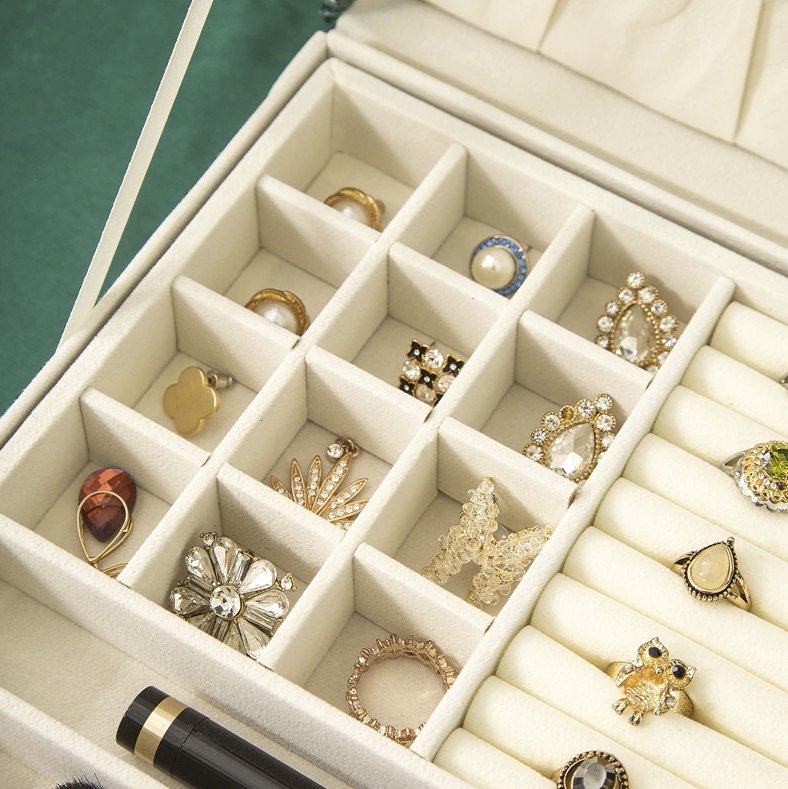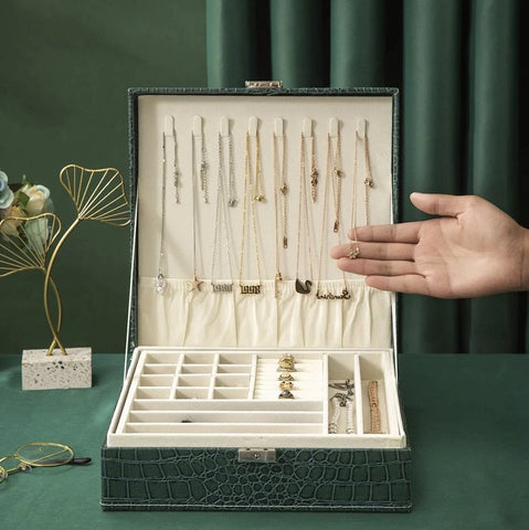 Inside, you’ll find compartments tailored to your specific storage needs: hooks for necklaces and pendants, sections for rings and earrings, and space for your other jewellery items.