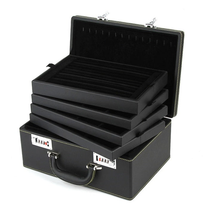 Discover the Modern Jewellery Case – a premium leather jewellery box with removable drawers and a convenient carry handle.