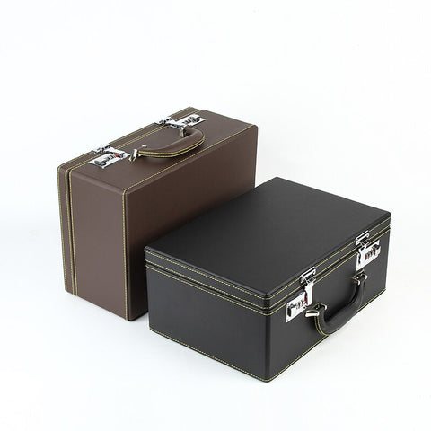 This Modern Jewellery Case is a jewellery box with a luxurious design. Crafted from high-quality leather, it offers an elegant aesthetic. Its suitcase-style shape adds a touch of sophistication to your jewellery collection. The removable, multi-tiered drawers provide practical space to organise your treasured pieces. Thanks to the convenient carry handle, you can easily take this case with you when travelling. Measuring 23.5 x 34 x 14 cm, this jewellery box offers ample space to store and protect your jewellery in style. Add a modern and stylish touch to your storage routine with the Modern Jewellery Case.