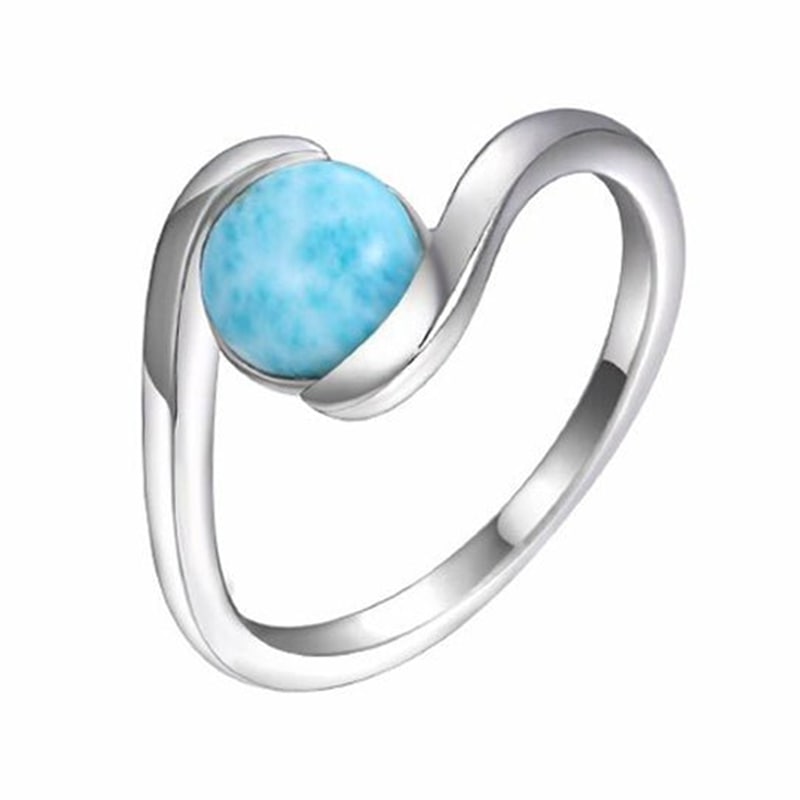 This vintage-style ring is made from 925 sterling silver and features a beautiful larimar stone at the centre. It is said that this stone symbolises peace, love and tranquility.