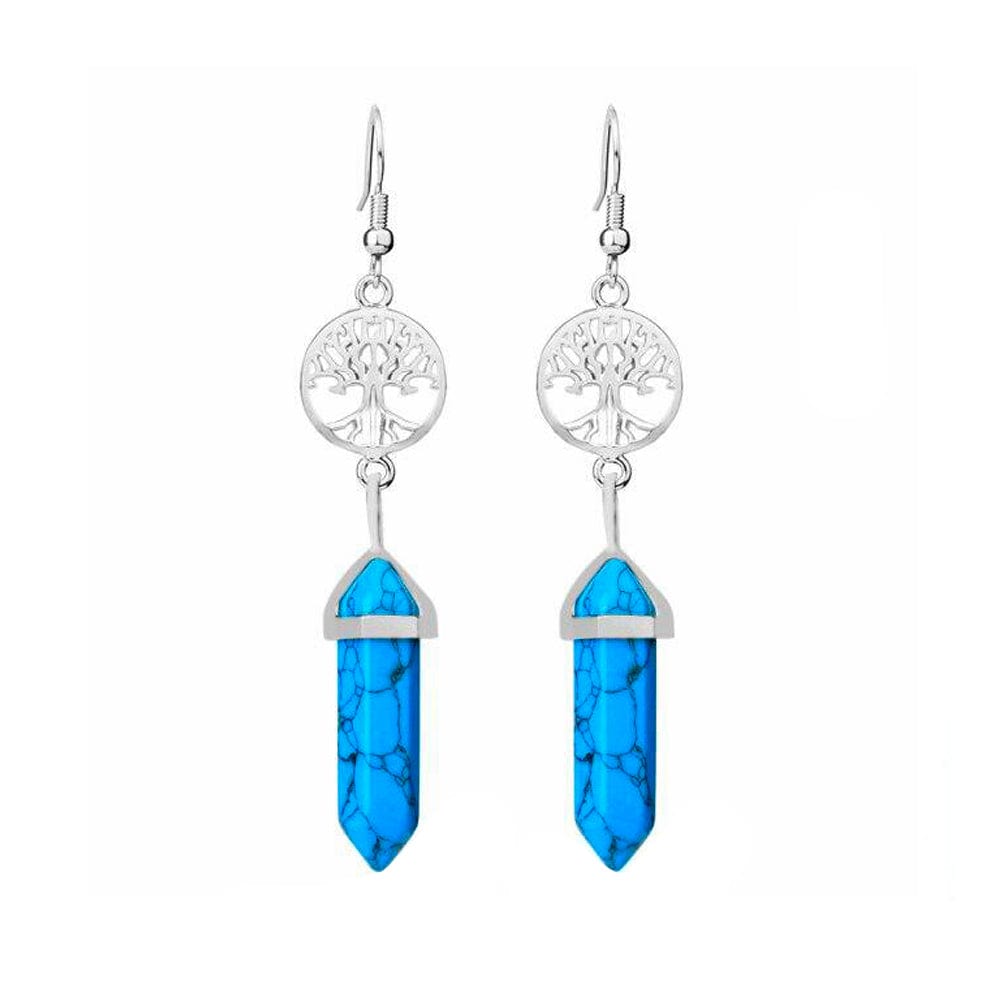 This charming pair of modern turquoise earrings brings you purification and serenity. This stone balances and harmonizes all chakras, stabilizes mood swings, and promotes inner peace. It is excellent against depression and exhaustion, and also has the power to prevent panic attacks.