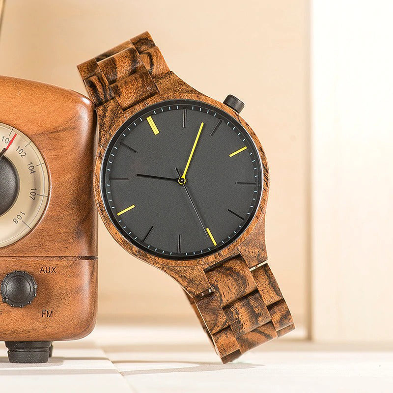 This modern wooden watch will certainly inspire you. You'll love the minimalist dial and the reliable, precise quartz movement. This is a watch that will make you stand out from the crowd!