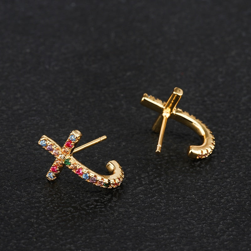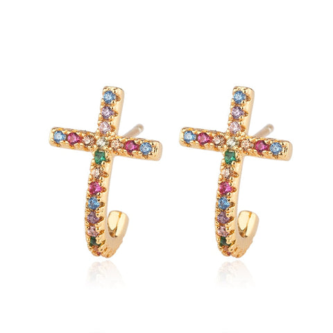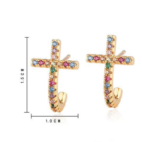 Women's Cross Earrings with Dazzling Multicoloured Rhinestone Gems