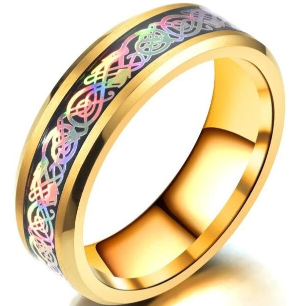 Let the rainbow of colours, charms, and fascinations burst from the depths of your heart as you adorn yourself with this multicoloured dragon ring.