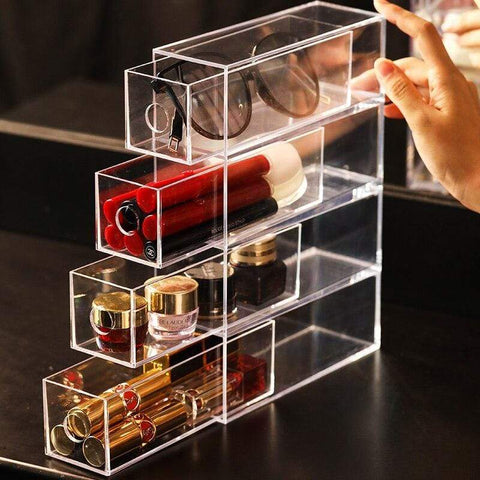 Multifunctional makeup organiser with 4 drawers for accessories and makeup.