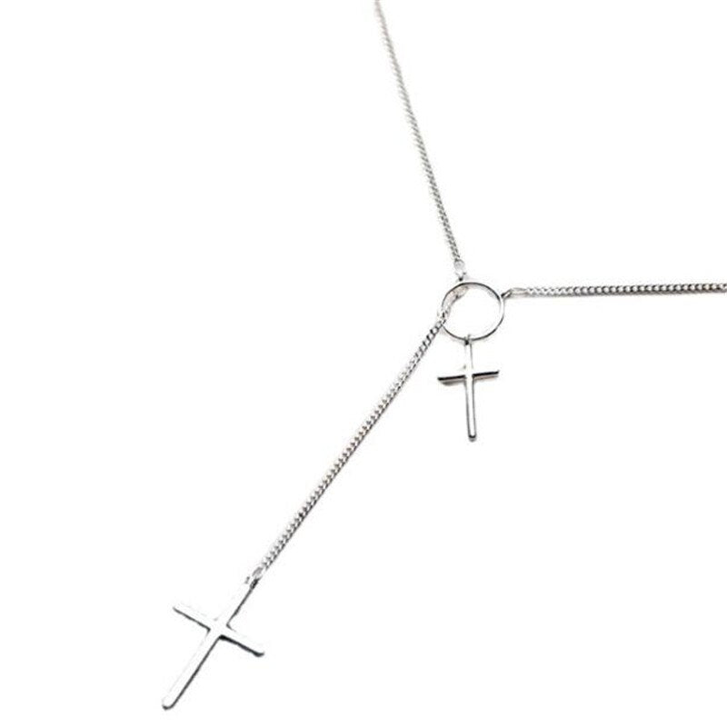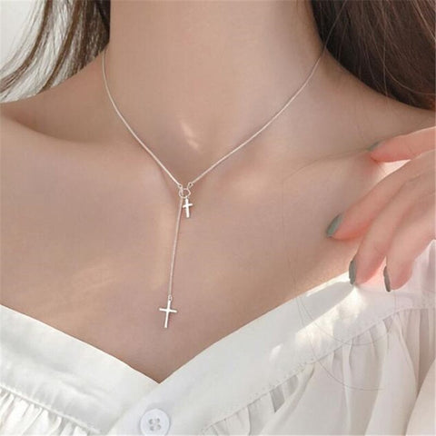 This double cross necklace is a piece of jewellery that doesn't go unnoticed. Its unique design with two intertwined crosses gives it a striking aesthetic appearance. Made from S925 silver, this necklace shines with elegance and attracts all eyes.