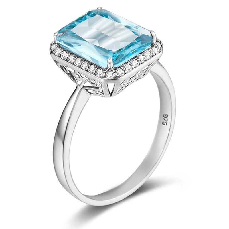 We introduce a beautiful women's ring in 925 silver, with a stunning natural aquamarine stone. This ring is the perfect way to add a touch of luxury and style to any look. Aquamarine is said to symbolize hope, courage, and luck, making it the ideal gift for a friend or loved one. The beautiful blue color of the stone is also known to promote peace and tranquility. Whether you wear it as a statement piece or as a daily ring, this silver ring will certainly attract all eyes.