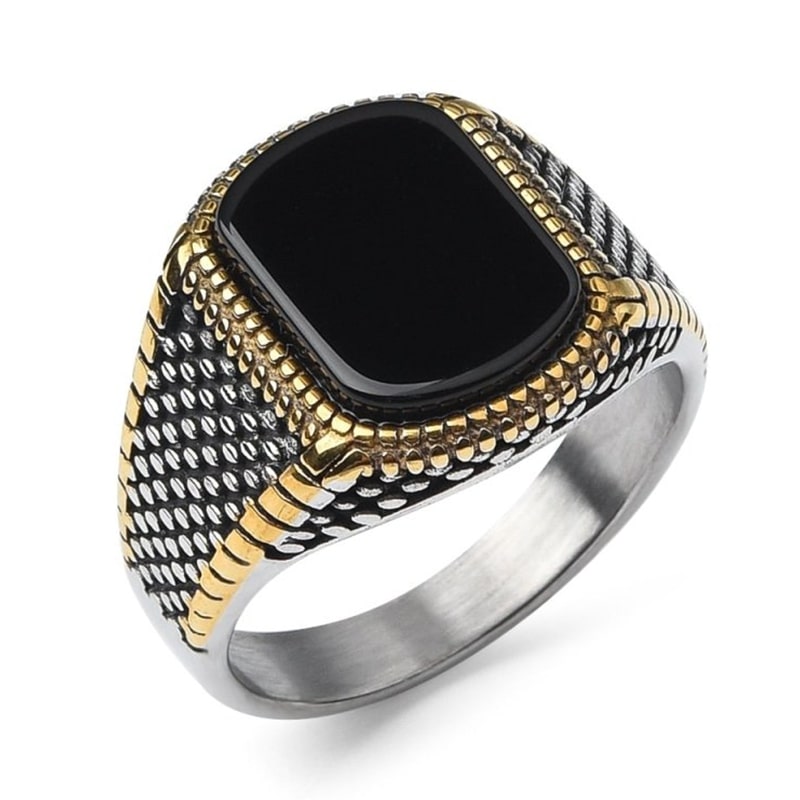 With this natural onyx ring, you can display your confidence without going overboard. It's perfect for making an instant statement on special occasions or in everyday life. With its deep colour and subtle shine, this magnificent signet ring complements any wardrobe.