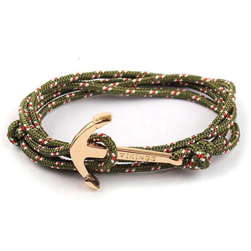 THIS ANCHOR BRACELET REMINDS OF THE FAMOUS ARMY CAMOUFLAGE COLOUR. THE KHAKI GREEN CORD OF THE BRACELET IS MADE OF NYLON, AN INCREDIBLY RESILIENT MATERIAL FOR A DURABLE BRACELET.